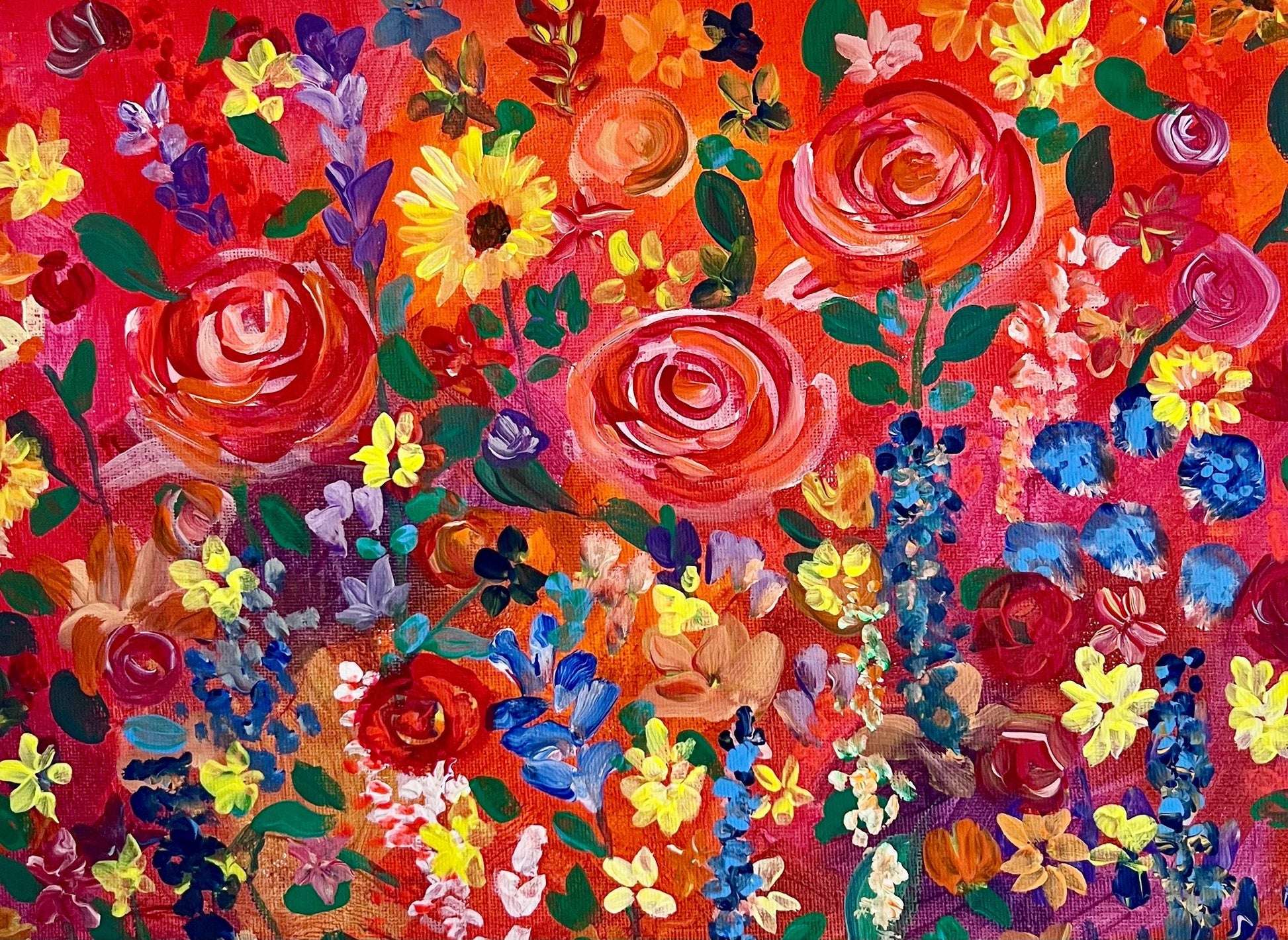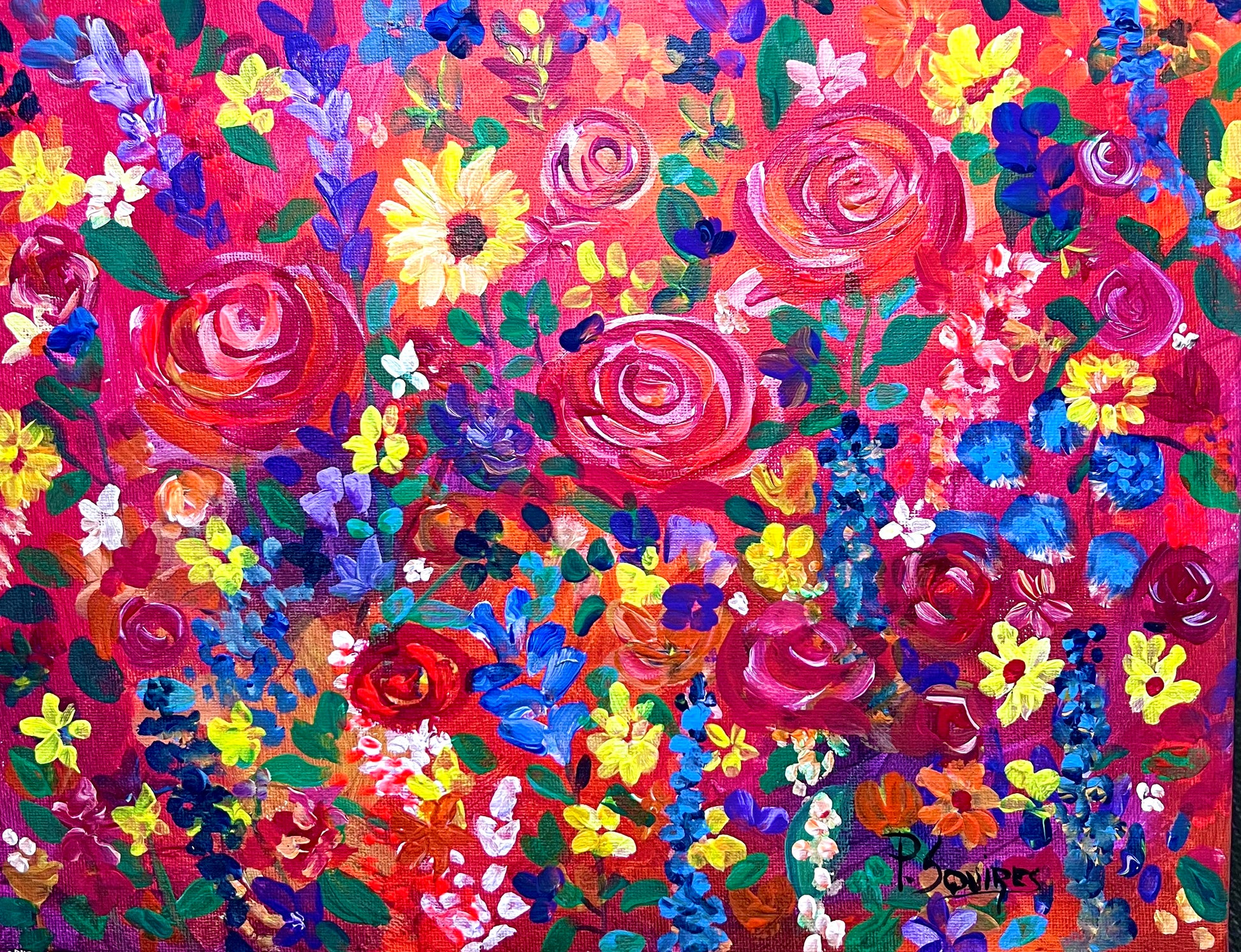 Rose and Daisy Garden Original Painting by Pamela Squires