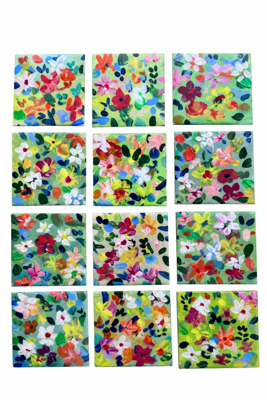 Each Mini Garden Original is a one-of-a-kind, hand-painted floral artwork created by Pamela Squires. Layered with joyful color, expressive brushstrokes, and organic movement, these tiny paintings capture the feeling of a blooming garden in miniature form.